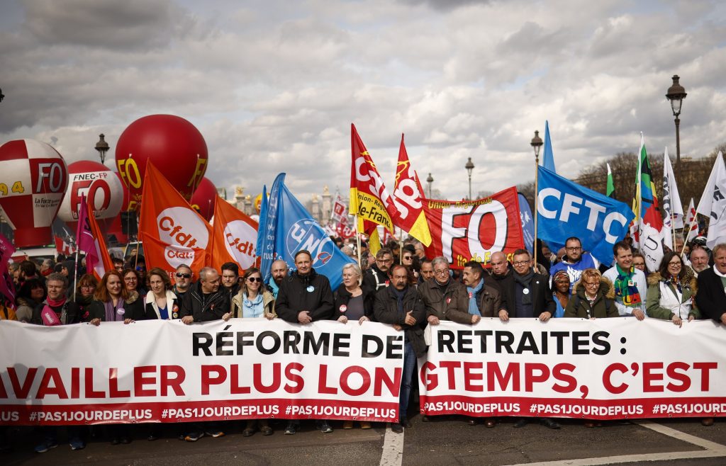 Francuski sindikati su ukazivali da radnici u sektorima poput građevinarstva, čeličana ili nege bolesnika ne mogu zdravstveno da izdrže rad do 64. ili 65. godine. Dodali su i da francuske kompanije nerado zadržavaju radnike starije od 55 godina, pa produženje granice ne bi dovelo do duže zaposlenosti, već bi mnoge primoralo da provedu više vremena na birou za nezaposlene pre odlaska u penziju. Odbacujući tvrdnju vlade da je penzioni sistem pred bankrotom, sindikalni lideri su predlagali da se deficit reši većim oporezivanjem bogatih, povećanjem doprinosa poslodavaca ili oporezivanjem visokih platnih bonusa, umesto da se teret prebacuje na radnike.
